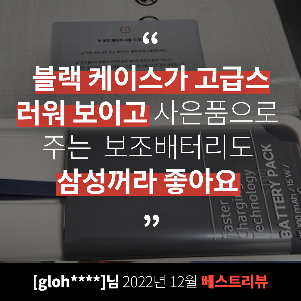 ※ 받자마자 개봉. 블랙 케이스가 고급스러워보이고 사은품으로 주는 보조배터리도 삼성꺼라 좋음. 구성품이 하나씩 꼼꼼하게 포장