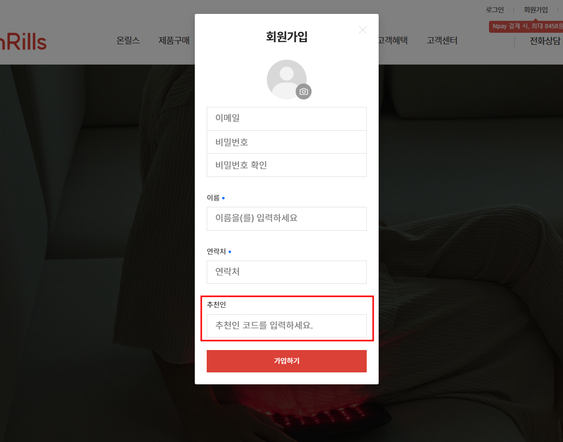 * 제품을 구매하지 않은 기존회원의 추천인 코드는 유효하지 않습니다.