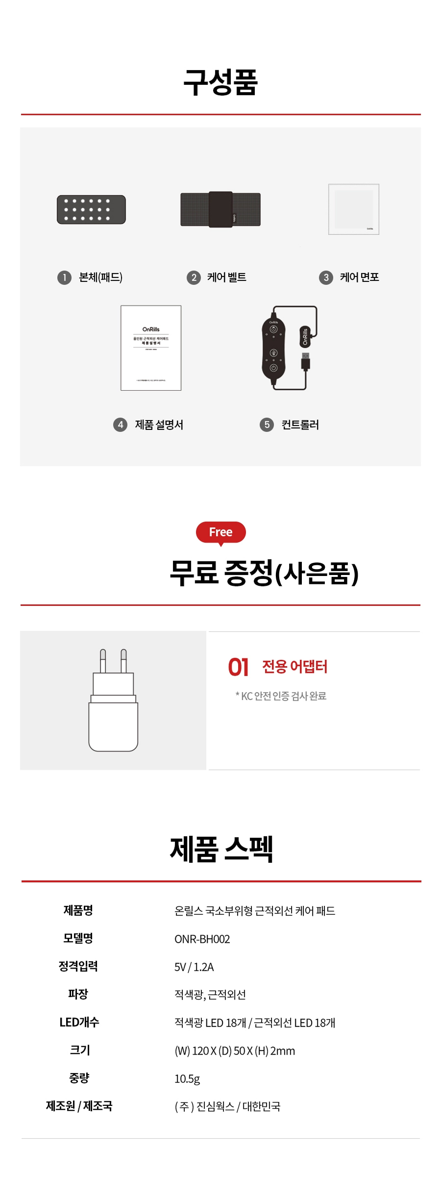 📌 구성품 : 패드(국소부위형) / 케어벨트(국소부위형) / 컨트롤러 / 케어면포