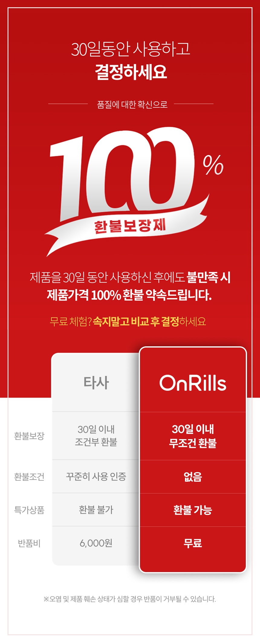 - 교환/반품을 하시기전에 온릴스고객센터 (1660-2084)로 교환 및 반품접수 후 안내를 받으신 후 진행해 주시길 부탁드립니다.
